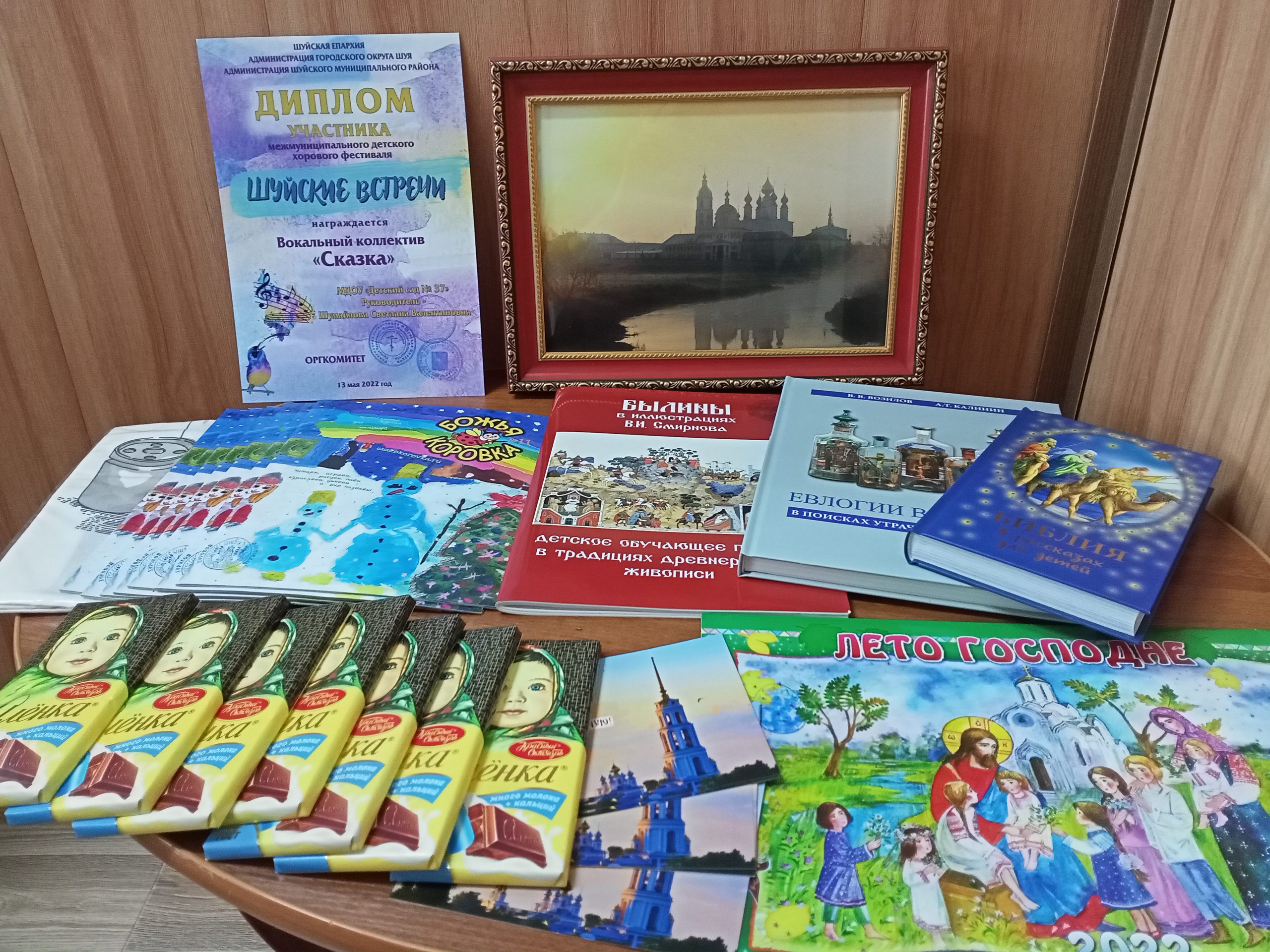 Целью фестиваля были: популяризация хорового пения как музыкального искусства, развитие творческого потенциала любительских хоровых коллективов, повышение исполнительского мастерства, обмен творческим опытом, расширение репертуара; обеспечение преемственности и развития отечественных традиций вокально-хорового искусства; решение актуальных задач духовного и нравственного воспитания молодёжи, расширение межнационального и межрегионального культурного сотрудничества. Фестиваль проводится уже в 4 раз на Шуйской земле и объединяет детские хоровые коллективы Ивановской области. В этом году фестиваль собрал 300 участников. От нашего детского сада в конкурсе участвовали воспитанники старшей и подготовительной групп — вокальный коллектив «Сказка». Ребята подготовили и вдохновенно исполнили две песни из номинаций фестиваля: патриотическая песня — «Моя Россия» Г. Струве, Н. Соловьёва и духовное песнопение — «Повсюду благовест гудит» А. Майков под руководством музыкального руководителя Шумайловой С.В.. За своё выступление ребята получили оглушительные аплодисменты и великолепные подарки от организаторов фестиваля.
